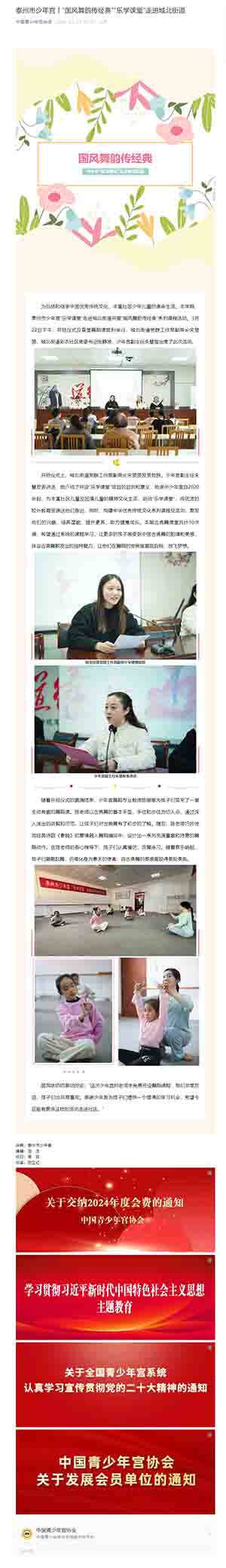《中国青少年宫协会》泰州市少年宫丨“国风舞韵传经典”“乐学课堂”走进城北街道