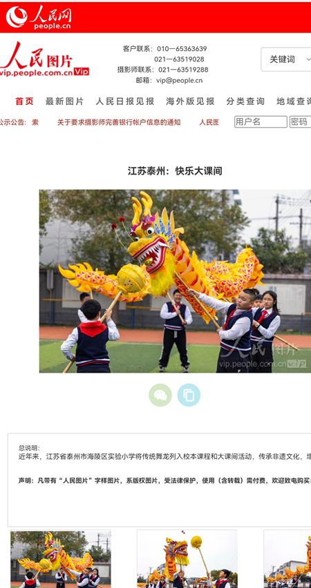 近年来,江苏省泰州市海陵区实验小学将传统舞龙列入校本课程和大课间活动,传承非遗文化,增强学生体质。