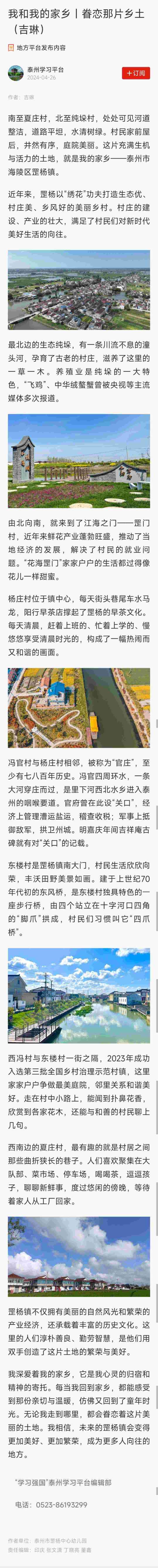 2024年4月26日《学习强国》我和我的家乡丨眷恋那片乡土(吉琳)