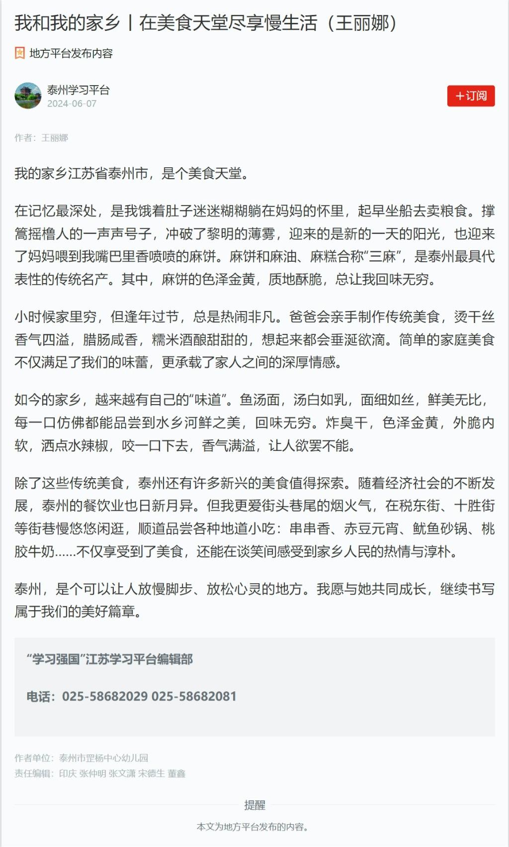 泰州,是个可以让人放慢脚步、放松心灵的地方。我愿与她共同成长,继续书写属于我们的美好篇章。