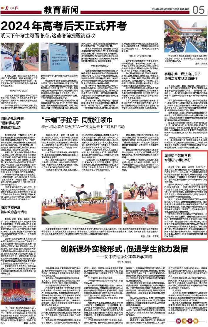 《泰州日报》海陵初中音乐学科 专题研讨活动举行
