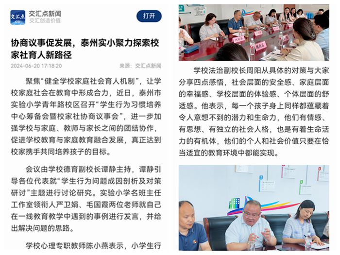 《交汇点新闻》协商议事促发展,泰州实小聚力探索校家社育人新路径