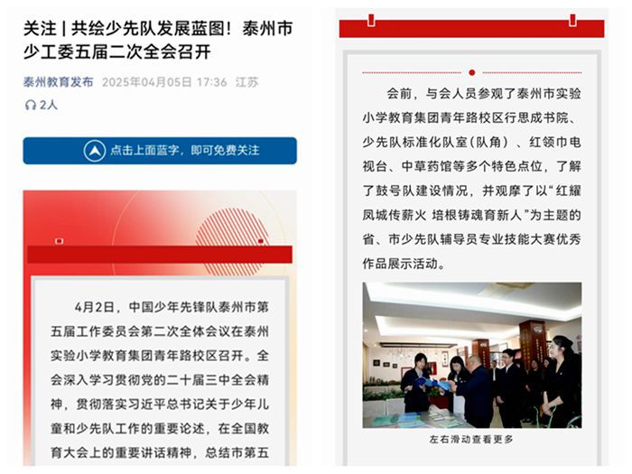 2025年4月5日《泰州教育发布》关注 共绘少先队发展蓝图!泰州市少工委五届二次全会召开