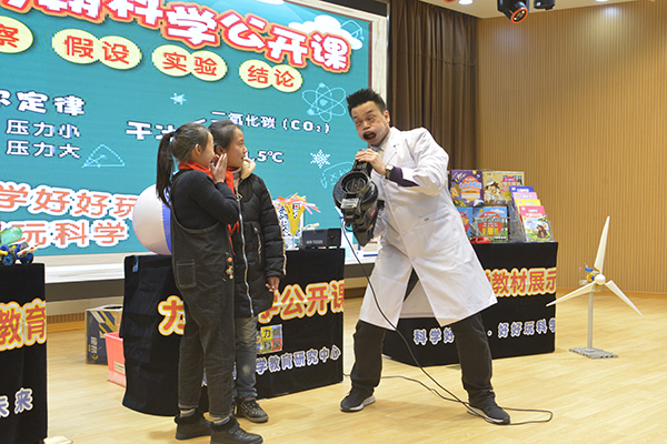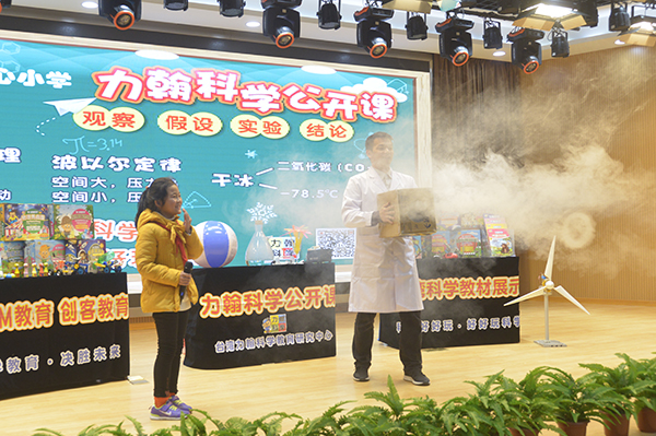 “力翰科学来自台湾,用表演的形式阐述科学教育,让孩子在快乐中体验科学乐趣。他们的教学理念是‘科学好好玩,好好玩科学’,希望每个孩子在玩中种下科学的种子。”该校副校长殷恒生说,他们学校通过申请,获得一学期免费体验课程的机会,而这样的课程这学期每周都有一节。
