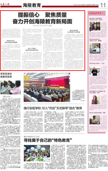 《泰州日报》提振信心 聚焦质量 奋力开创海陵教育新局面