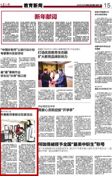 《泰州日报》泰州市幼儿园开展教师寒假访百家