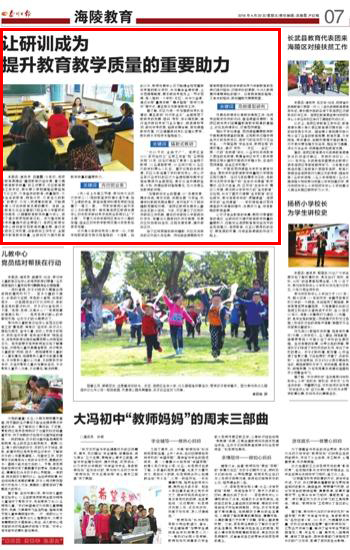《泰州日报》让研训成为 提升教育教学质量的重要助力