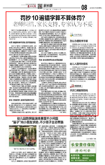 《泰州晚报》罚抄10遍错字算不算体罚 老师纠结,家长支持,专家认为不妥