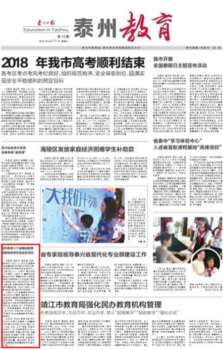 此新闻刊登于2018年6月11日《泰州日报》。