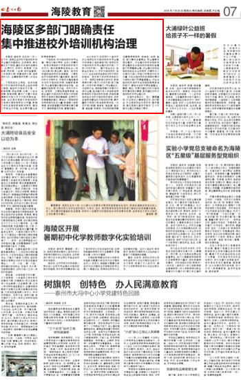 《泰州日报》海陵区多部门明确责任 集中推进校外培训机构治理