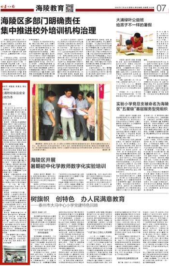 《泰州日报》“常规范、常整理、常清洁、常检查、常总结” 大浦附幼食品安全 以幼为本