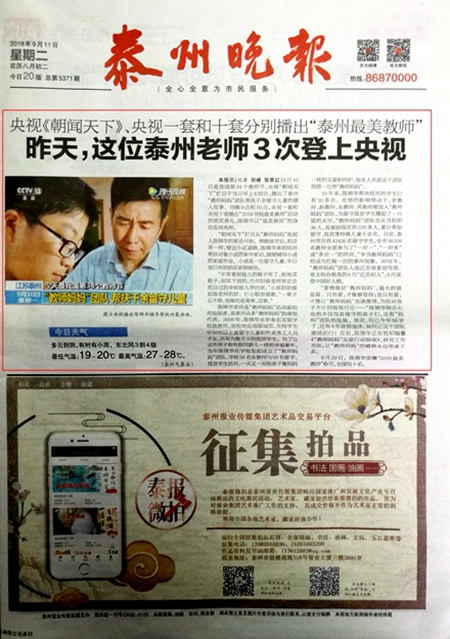 此通讯刊登于2018年9月11日《泰州晚报》。