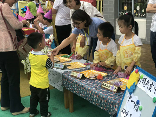 下午,各班将月饼摆放到操场上各自的摊位上,供放学时千余名孩子和家长购买。当得知这些义卖的月饼,是孩子们自己做的,而且义卖款是帮助孤寡老人时,不少小朋友拉着爸爸妈妈的手来到义卖摊位前来选购。中班葭葭爸爸说,和孩子们一起动手做月饼不仅是一次温馨的亲子互动,更让孩子在活动中了感受到中国的传统文化,将月饼义卖更是生动又有意义,家长都很支持幼儿园以后多举办类似的活动。