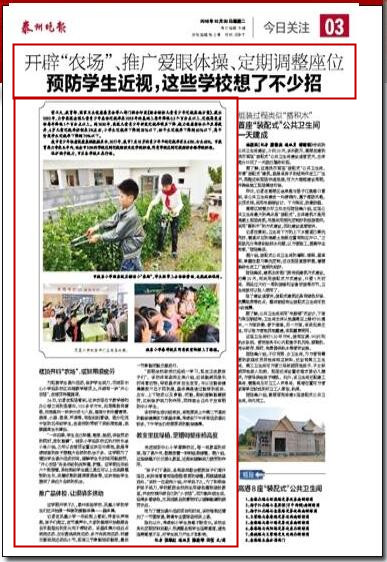 《泰州晚报》开辟“农场”、推广爱眼体操、定期调整座位 预防学生近视,这些学校想了不少招