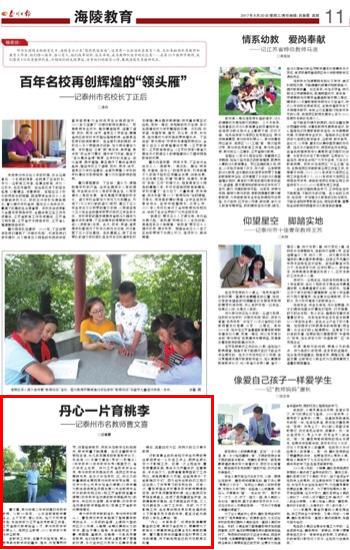 《泰州日报》丹心一片育桃李——记泰州市名教师曹文喜