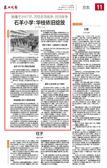 很多出生农村的60后、70后,都有在村里上小学的经历。现如今多数乡村小学早已退出历史的舞台,不过始建于1917年的苏陈镇石羊小学,如今是海陵区唯一的村小,至今还在履行着教书育人的使命。