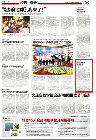 此篇通讯刊登于2019年4月20日《泰州日报》A06版
