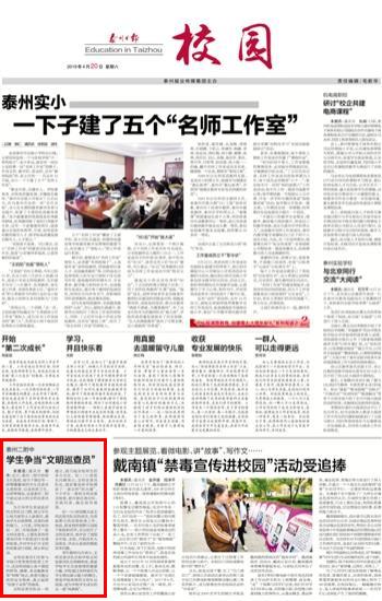 《泰州日报》泰州二附中学生争当“文明巡查员”