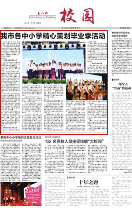 近日,泰州市实验小学六年级437名毕业生齐聚学校报告厅,参加“向着更美好的明天进发!”为主题的毕业典礼,他们和敬爱的老师们、亲爱的爸爸妈妈们一起,体验和见证小学阶段的点点滴滴,上好最有意义的“最后一课”。