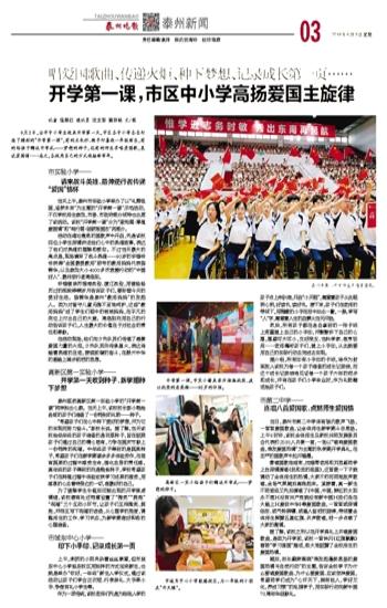 《泰州晚报》开学第一课,市区中小学高扬爱国主旋律