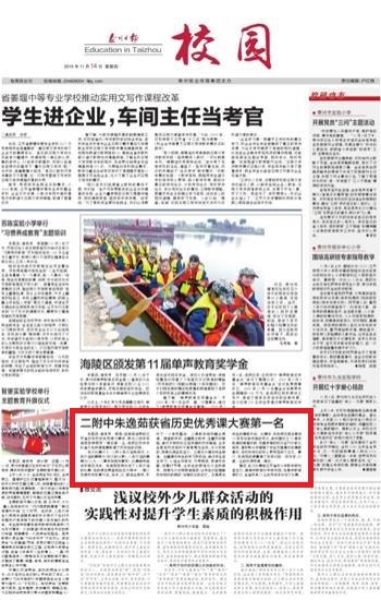 《泰州日报》二附中朱逸茹获省历史优秀课大赛第一名