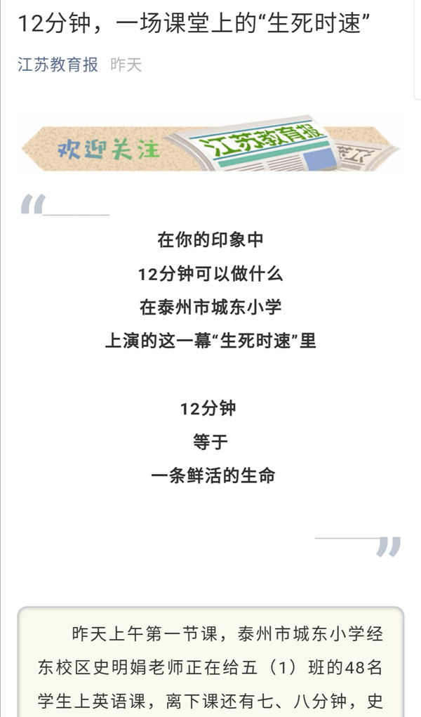 《江苏教育报》12分钟,一场课堂上的“生死时速”