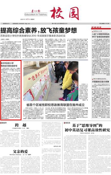 《泰州日报》泰州市实验小学 再获省文明校园称号