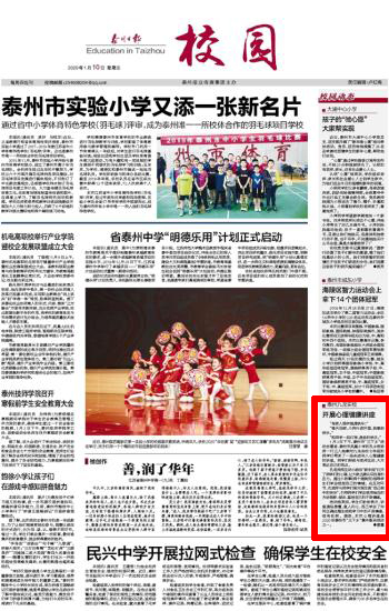 活动结束后,学生们纷纷表示,讲座通俗易懂,直入内心,自己学会了如何正确处理生活和学习中的不良情绪,很有收获。据悉,本次心理讲座是2020年泰州市“三下乡”集中服务活动之一。