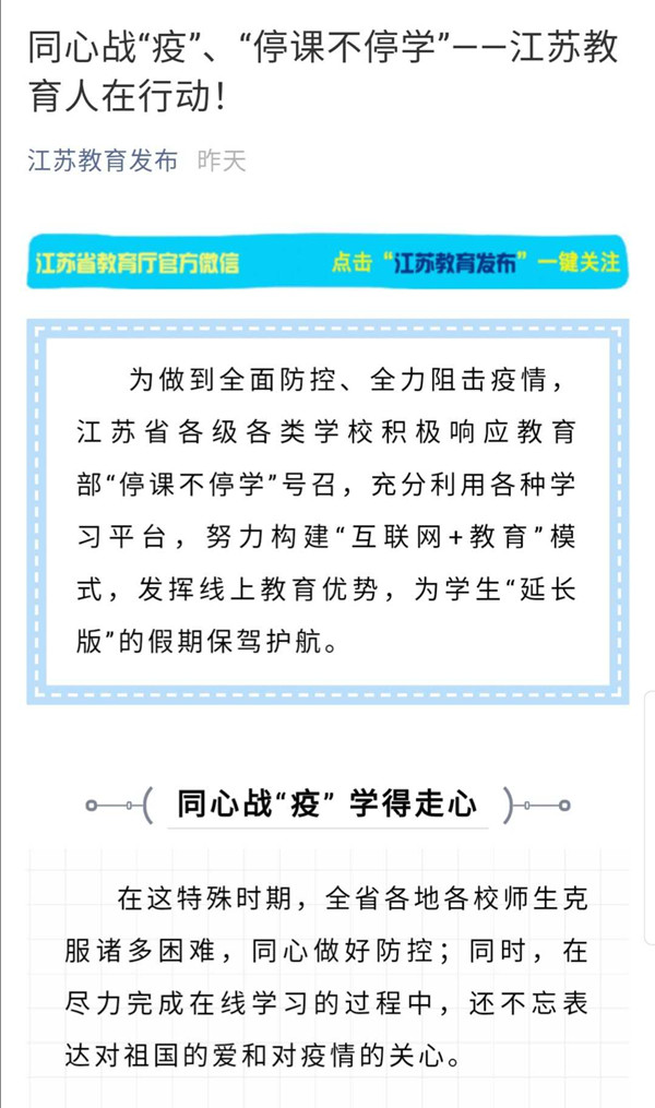 《江苏教育发布》同心战“疫”、“停课不停学”——江苏教育人在行动!