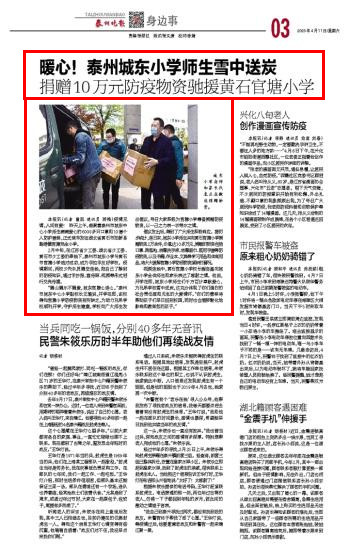 本文刊登于20200411《泰州晚报》A03版头条