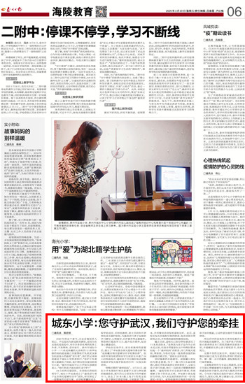 《泰州日报》城东小学:您守护武汉,我们守护您的牵挂!