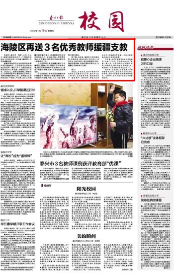 《泰州日报》海陵区再送3名优秀教师援疆支教