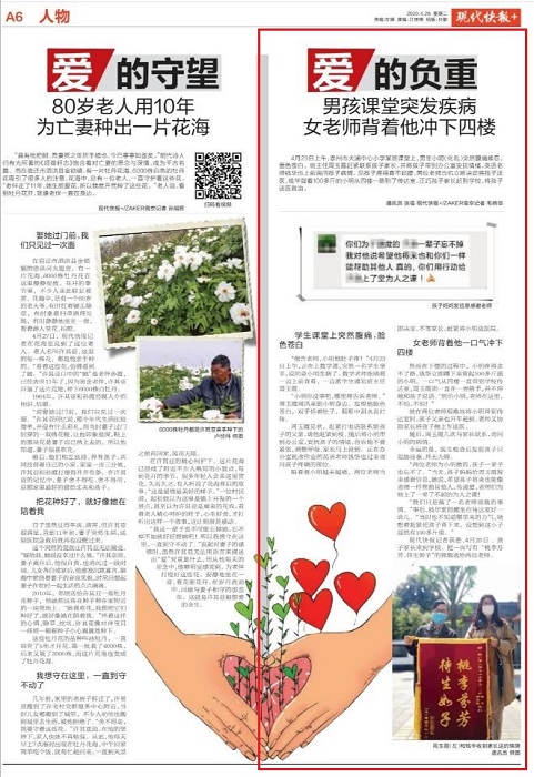 《现代快报》男孩课堂突发疾病,女老师背着他冲下四楼