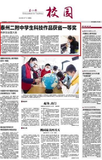 《泰州晚报》泰州二附中学生科技作品获省一等奖