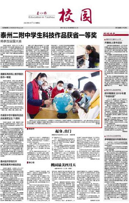 《泰州日报》泰州市实验小学开设“世界地球日进课堂” 来源:泰州日报 作者:卢红梅 凌玲 发布时间:2020-05-08 浏览次数: 次 【字体:小 大】 每年的4月22日是“世界地球日”,今年是第51个世界地球日,主题是“珍爱地球,人与自然和谐共生”。当天,泰州市实验小学开设“世界地球日进课堂”,邀请泰州“金泰阳”青年志愿者们为学生们讲解地球科普知识,引导学生爱护地球、认识地球,深化学生对保护环境和保护地球的意义认识,争做护卫地球环境小卫士。凌玲摄 此图片新闻刊登于2020年5月1日《泰州日报》。 分享到: 【打印正文】 相关内容