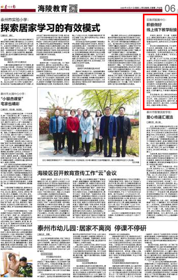 此文刊登于《泰州日报》2020年4月21日 A06版:海陵教育