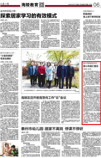 此文刊登于《泰州日报》2020年4月21日 A06版:海陵教育