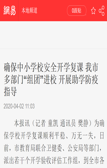 《网易新闻》确保中小学校安全开学复课 我市多部门“组团”进校 开展助学防疫指导