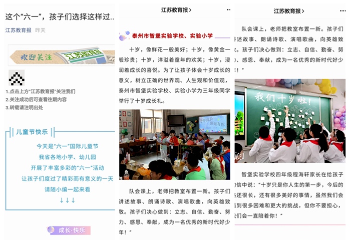 《江苏教育报》泰州市智堡实验学校、实验小学 “十岁”成长礼