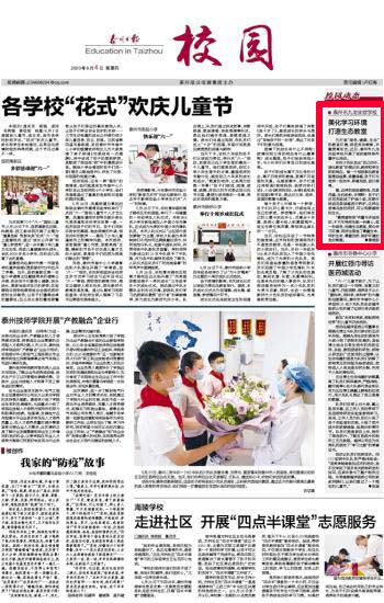 此新闻刊登于2020年6月4日《泰州日报》校园版