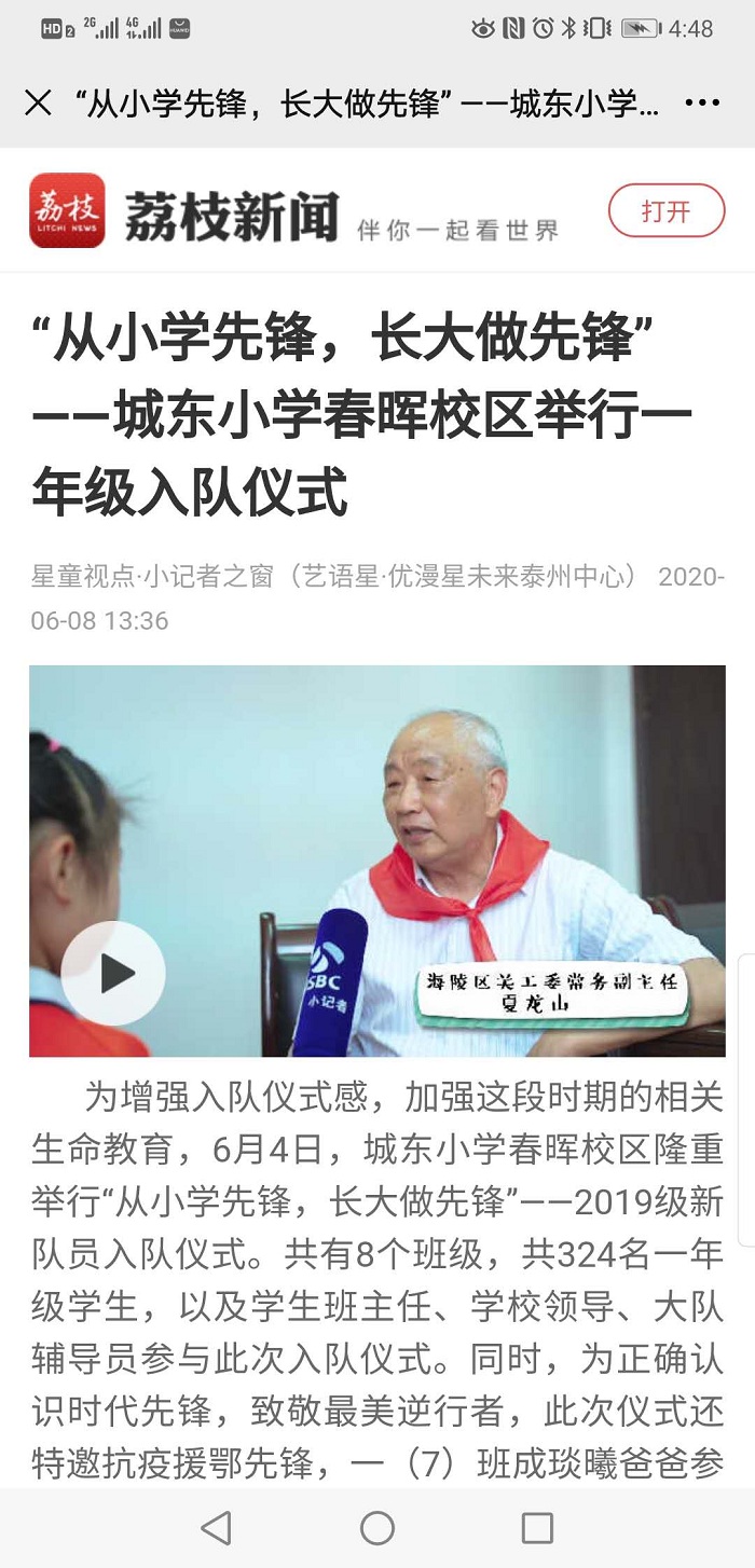 《荔枝新闻》“从小学先锋,长大做先锋” ——城东小学春晖校区举行一年级入队仪式