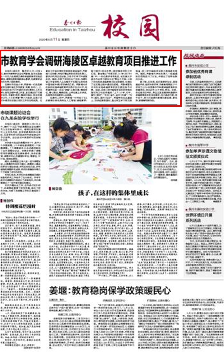 《泰州日报》市教育学会调研海陵区卓越教育项目推进工作