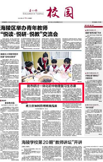 《泰州日报》九龙实校:我市研讨一体化初中物理复习生态课