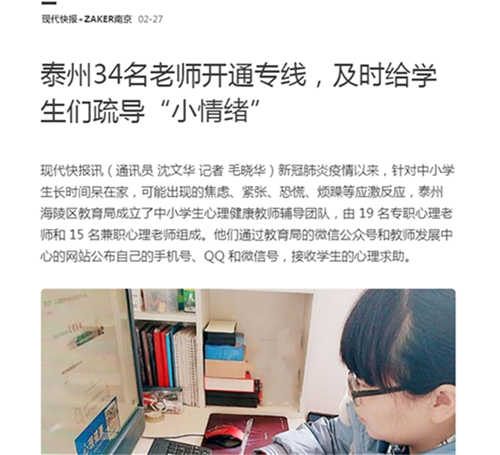 《现代快报》泰州34名老师开通专线,及时给学生们疏导“小情绪”