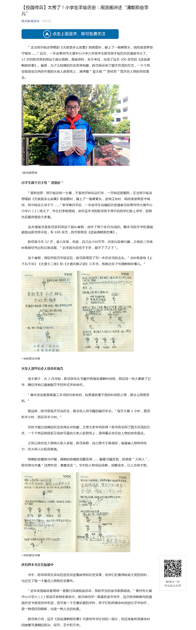 《泰州教育发布》太秀了!小学生手绘历史:用漫画讲述“清朝那些事儿”