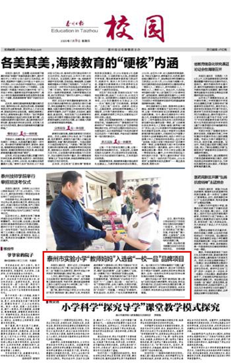 《泰州日报》泰州市实验小学“教师妈妈”入选省“一校一品”品牌项目