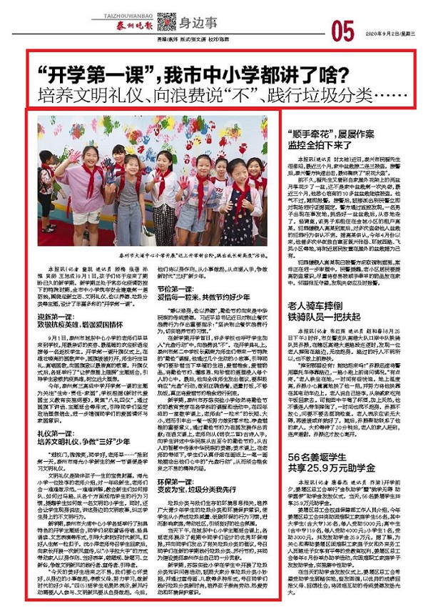 《泰州晚报》“开学第一课”,我市中小学都讲了啥?