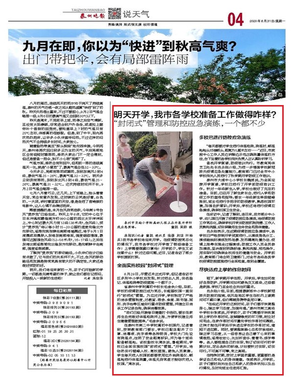《泰州晚报》明天开学我市各学校准备工作做得咋样?