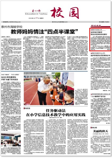 《泰州日报》泰州市实验小学喜获市科学教育 综合示范学校命名表彰