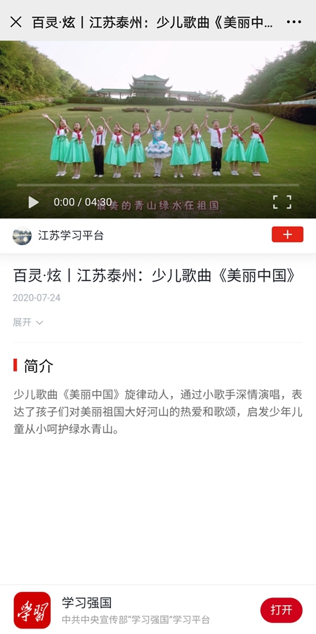 【学习强国-百灵·炫】百灵·炫丨江苏泰州:少儿歌曲《美丽中国》